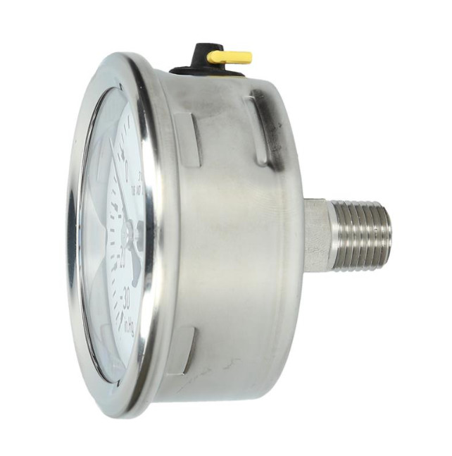 گیجهای فشار را مطابق با الزامات استاندارد اروپایی S3 Safety Edition EN 737-1 تولید و تأیید میکند.گیج فشار ایمنی شامل یک پنجره بدون شکستگی، یک لایه ضد شعله ایمنی بین سیستم اندازه گیری و صفحه و یک درب پشتی کاهش فشار ایمنی است.در صورت خرابی، اپراتور در جلو محافظت می شود و رسانه یا اجزای آن فقط می توانند از پشت بدنه بیرون بیفتند.برای شرایط سخت کاری، مانند لرزش، تمام کنتورها نیز اختیاری هستند.